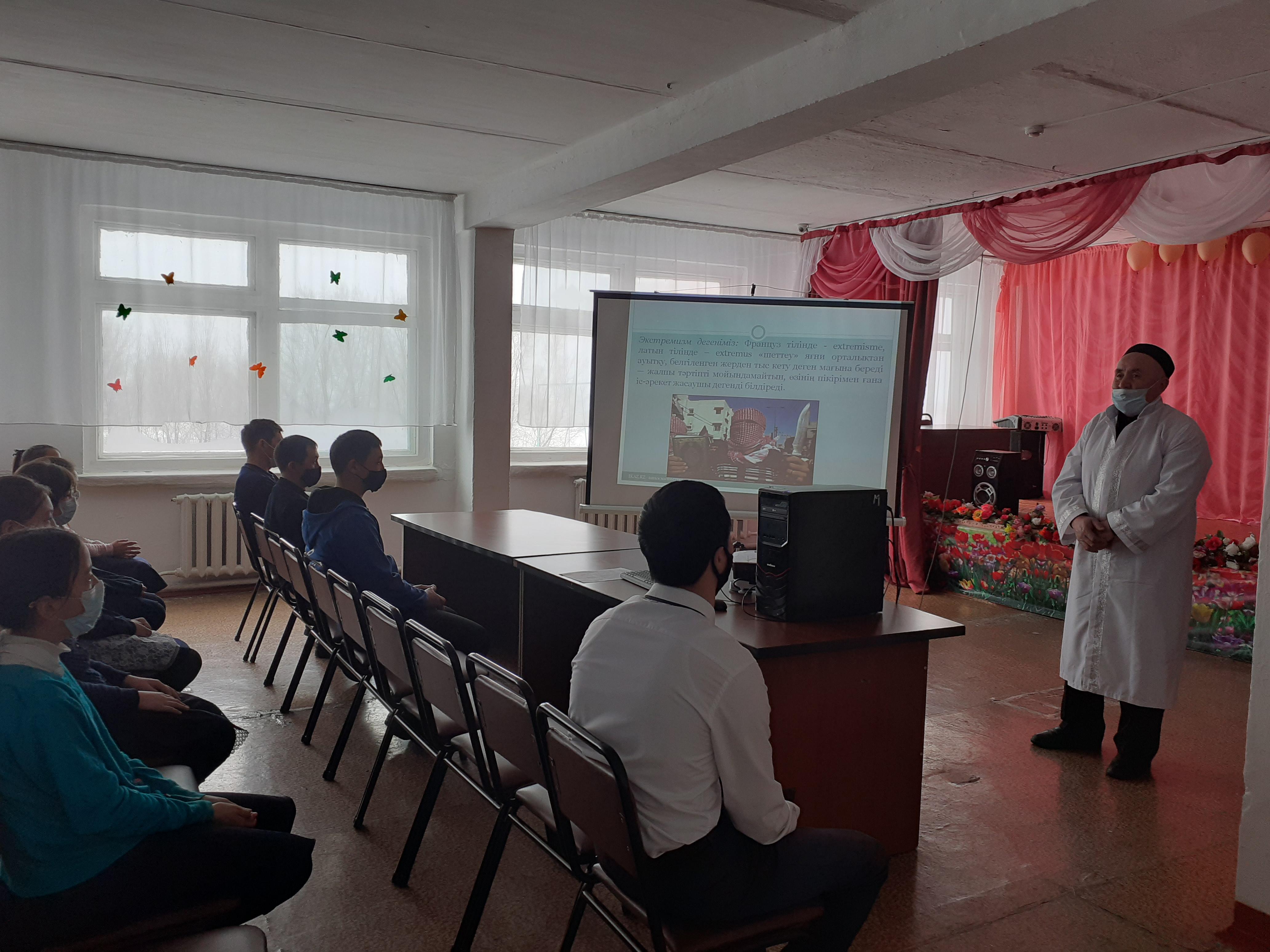 12 февраль 2021 0 1 2 3 4 5 Діни экстремистік терроризмнің алдын алу және интернет желісіндегі қауіпсіздігі жайлы ауыл имамы Ағзомов Мұратпен кездесу