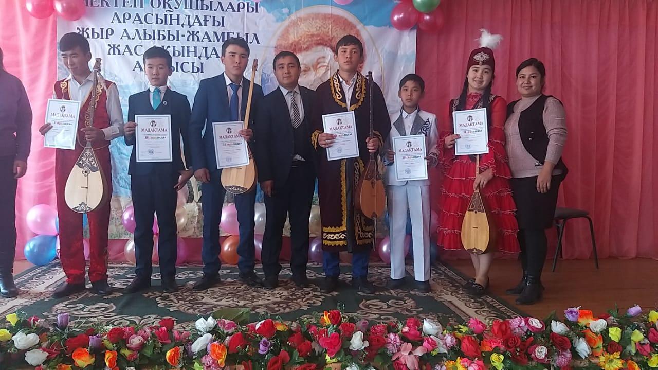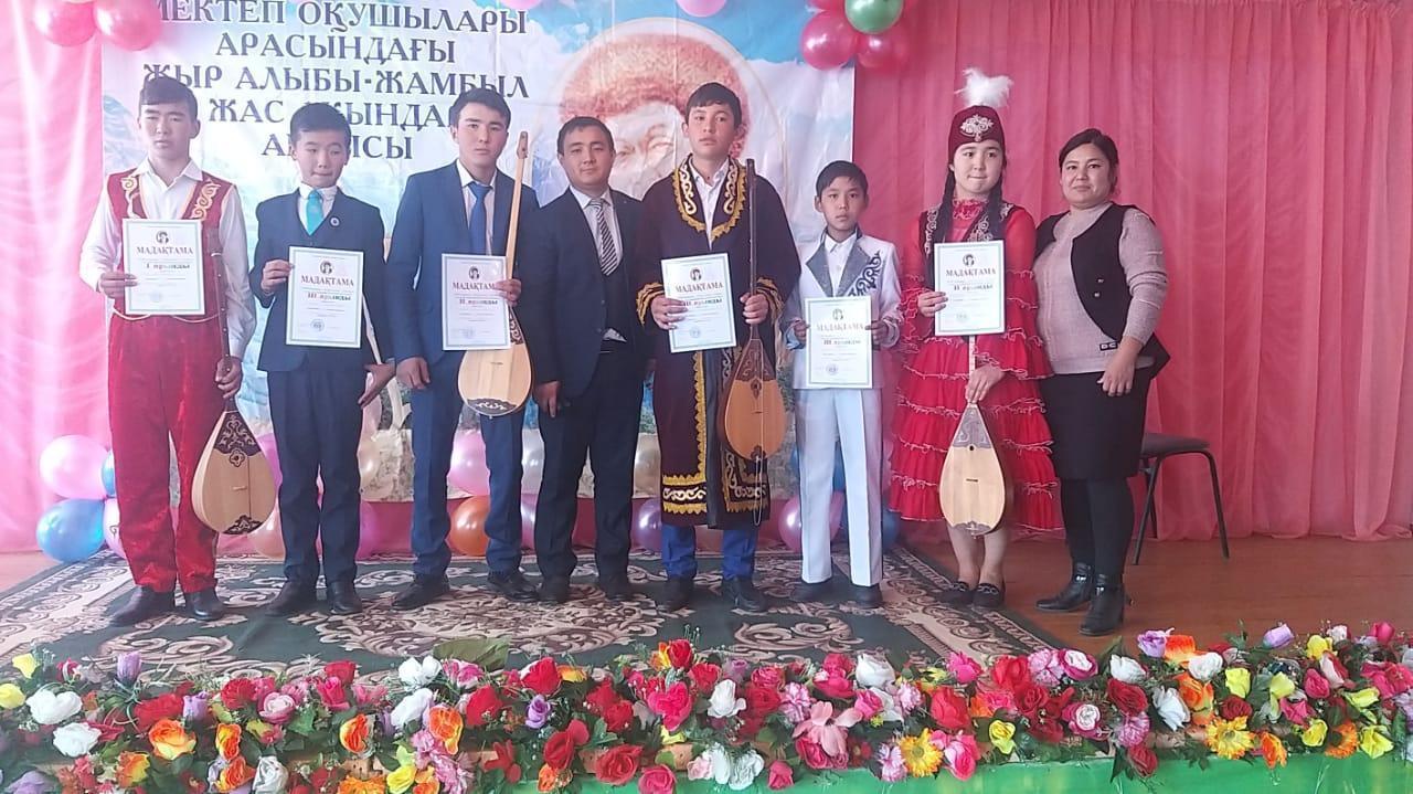 30 қазан күні аудан көлемінде мектеп оқушылар арасында"Жыр алыбы-Жамбыл"атты жас ақындар айтысы болып өтті.Айтысқа ауданымыздың оқушылары қатысып төл өнерімізді ортаға салып өтті.Нәтижесінде жүлделі орынға ие болған екі оқушымыз облыстық айтысқа жолдама алды