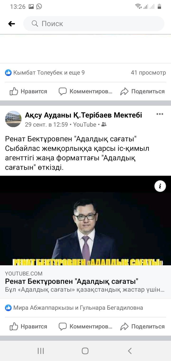 Адалдық сағаты » "Қуат Терібаев атындағы орта мектебі, мектепке дейінгі шағын орталығымен" отдела образования Кербулакского района