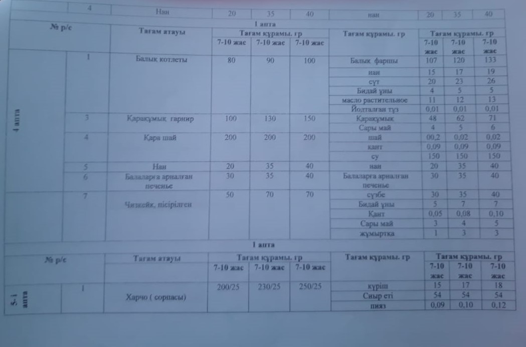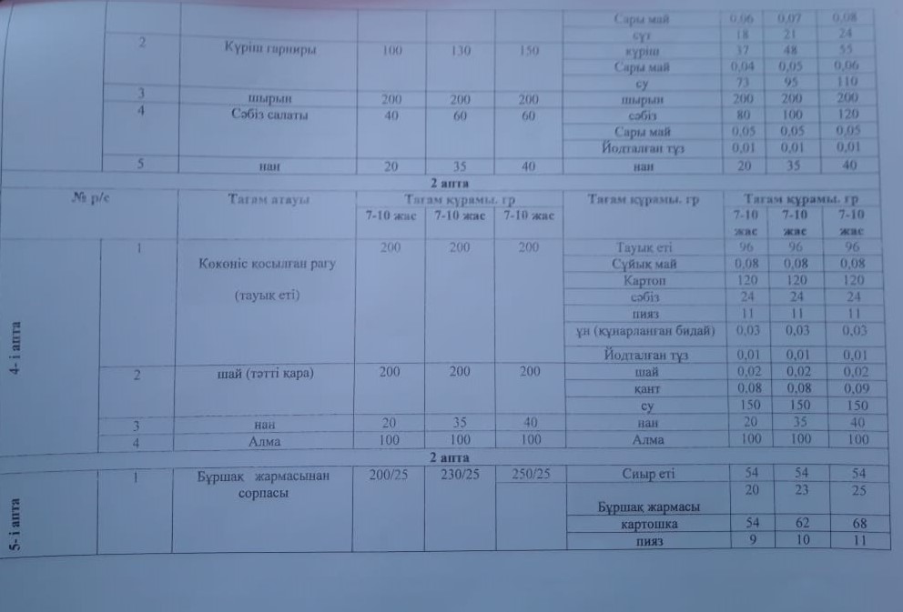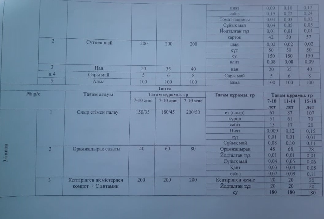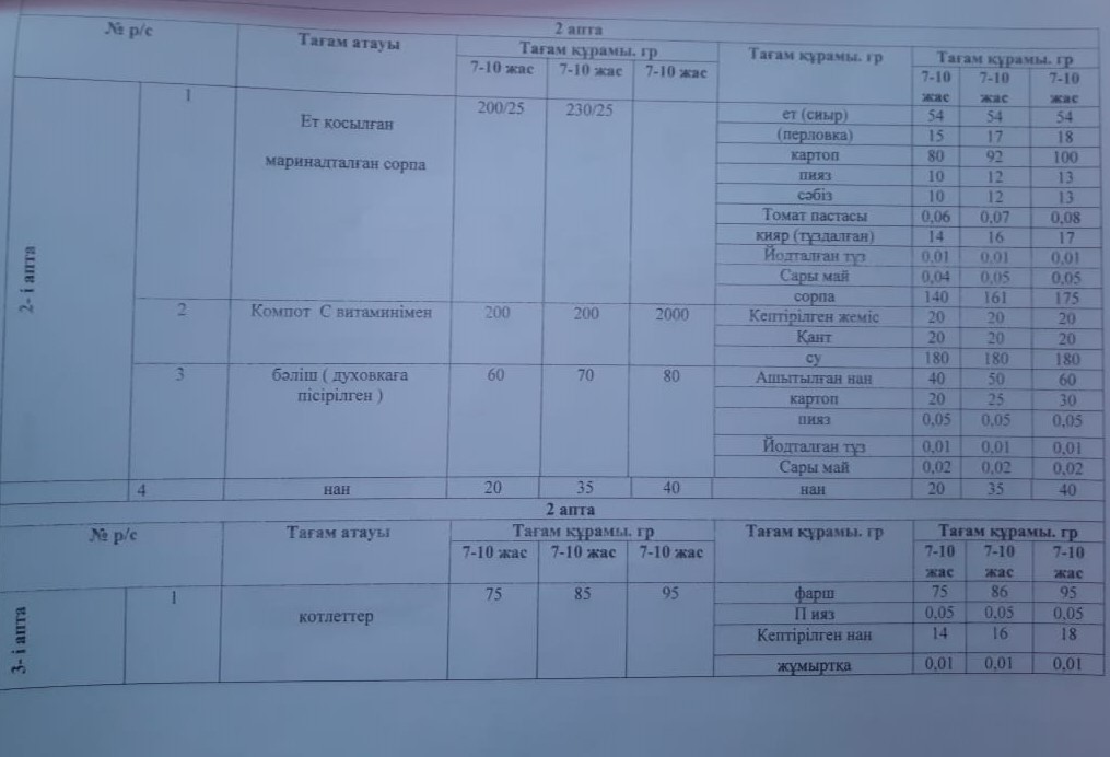 Ыстық тамақ менюі » "Қуат Терібаев атындағы орта мектебі, мектепке дейінгі шағын орталығымен" отдела образования Кербулакского района